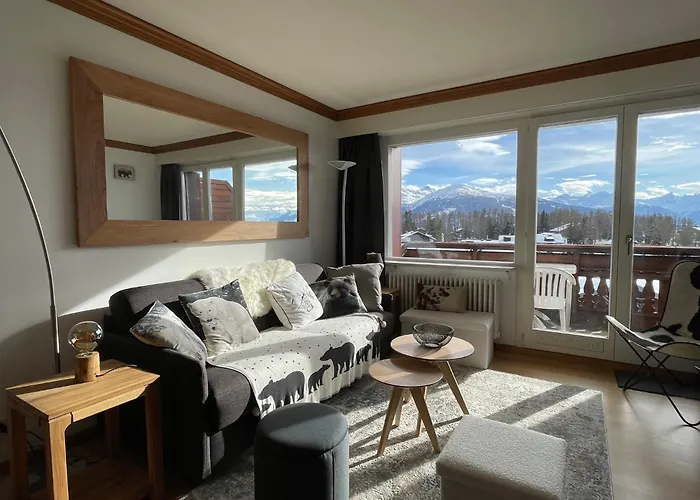Lägenheten Cosy Rooftop Downtown Crans-Montana With Stunning View And Swimming Pool med 1 sovrum, som erbjuder en inomhuspool, ligger inom 4 km från Funitel Violettes-Plaine Morte. Den 74 m² stora lägenheten har bastu och inomhuspool, samt erbjuder tillgång till golfklubb i området.